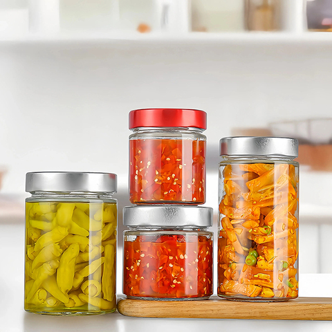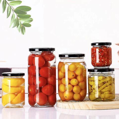 Frascos de vidrio reutilizables para almacenamiento de alimentos, tarro para encurtidos, tarro para especias, contenedor de cocina, tarros transparentes para almacenamiento de alimentos con tapa de rosca