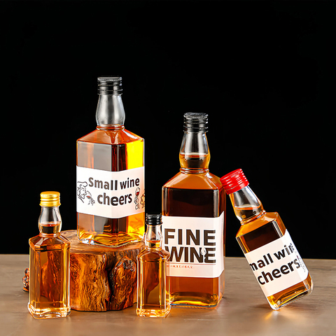 Botella de vidrio vacía cuadrada transparente personalizada, 50ml, 100ml, 200ml, 375ml, 500ml, tamaños para brandy, whisky, Tequila, vodka, tapa de corona
