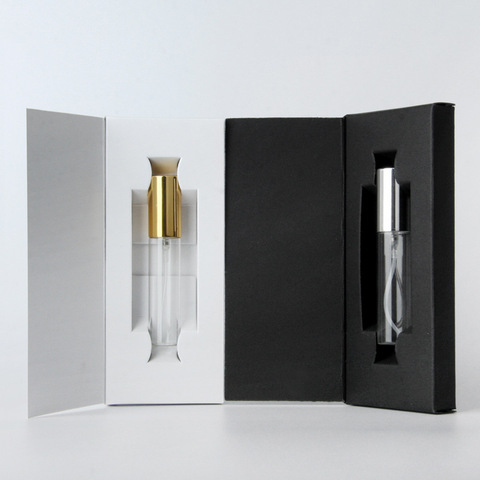 Mini botellas de perfume de vidrio redondas de viaje portátiles Botella de spray transparente de vidrio de 10ml con caja
